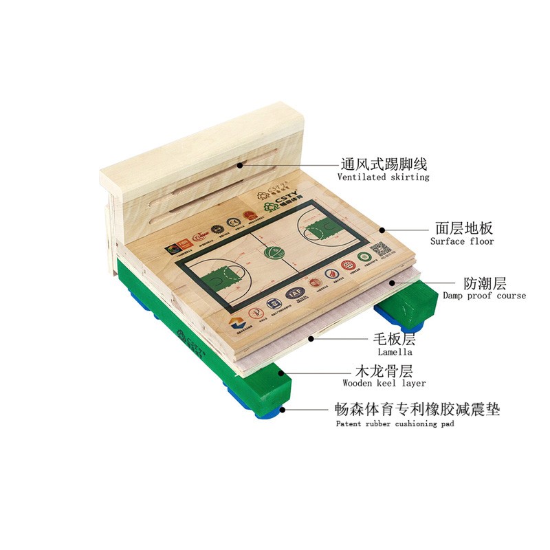 单层龙骨结构具有优良的运动弹性,均匀吸震性,耐用,维护简单等特点。单层结构龙骨相对简单,是所有结构中经济实惠的。 适合地面预留高度不够,中小型比赛场馆。